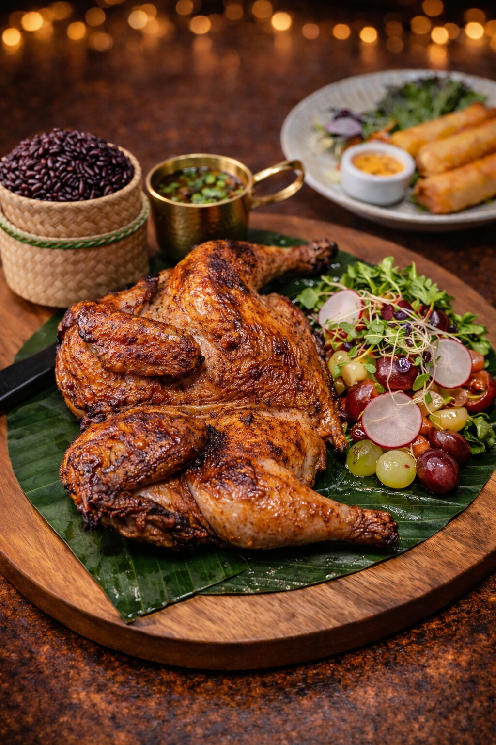 Baked Cornish hen served with green papaya and grape salad